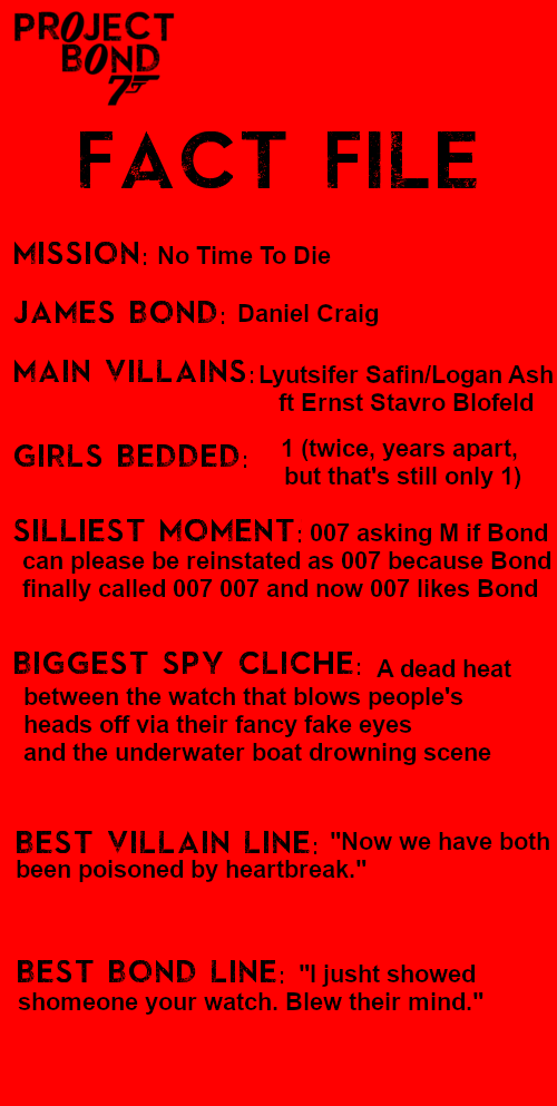 Hey there, avid readers. It’s been a while. I hope you’ve managed to find some five-line poetry or other alternative reading material to keep you going in the meantime. But Bond is back, and that means that Project Bond is back as well, despite mass protests in the streets.