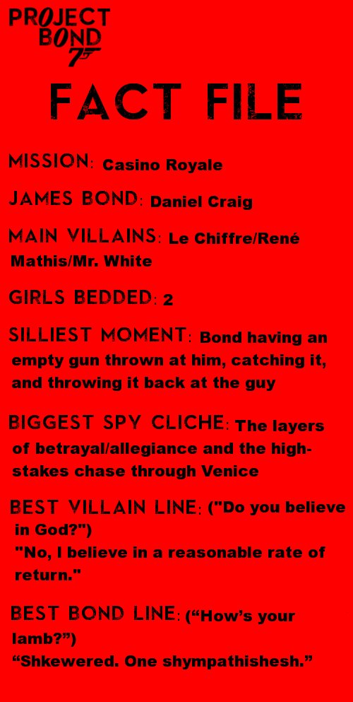 Casino Royale breaks quite a few other traditions of the Bond series. For the first time, Miss Moneypenny does not feature, and Q is absent for just the second time. This is also the first Eon film not to open with a gun barrel sequence, and the first to incorporate it into the narrative, thusly framing Bond’s first kill at the start of the opening credits. The film seems to serve as a statement of intent for making progressive changes to the franchise, and left me really looking forward to the next one.